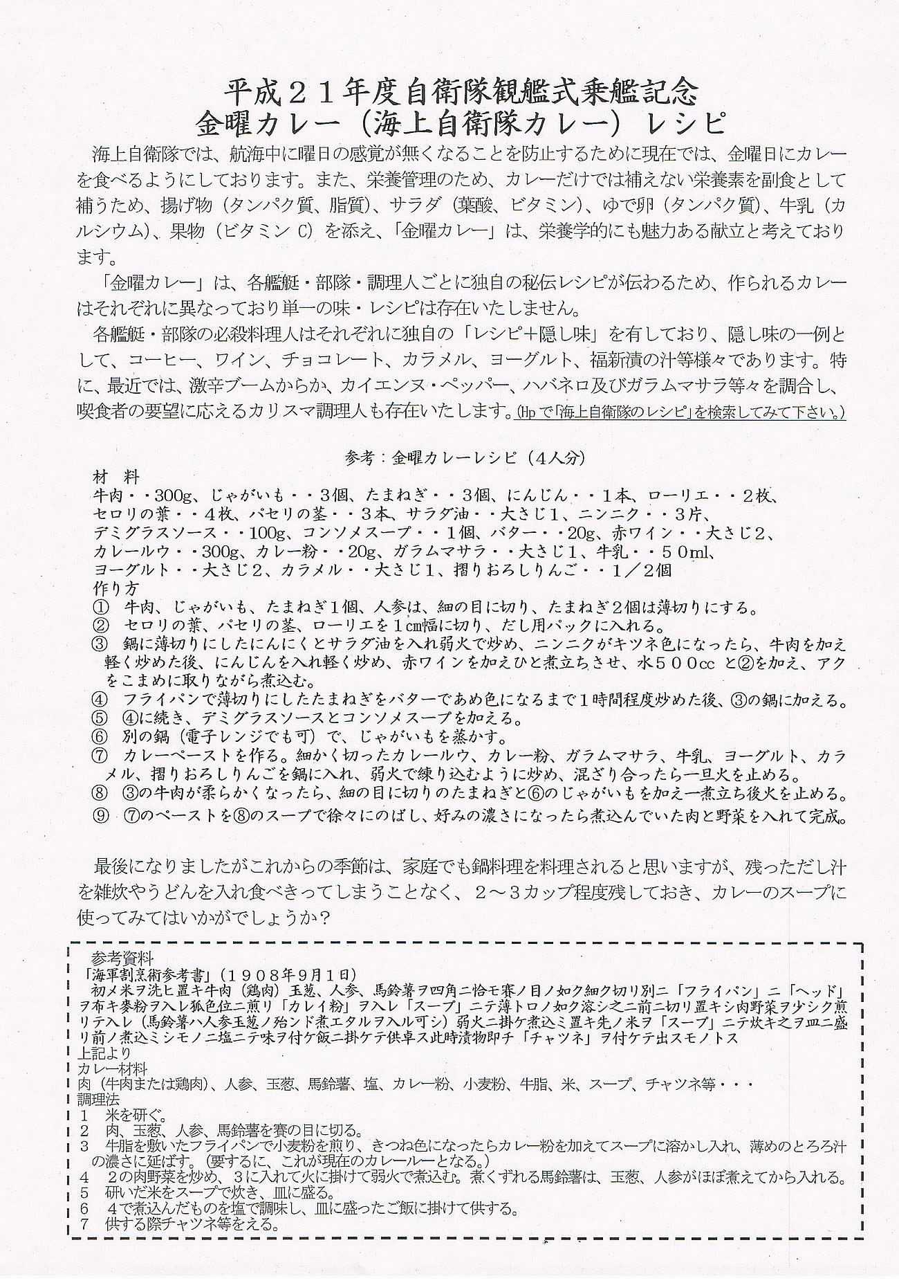 【軍艦カレーレシピ】貰って来ました。