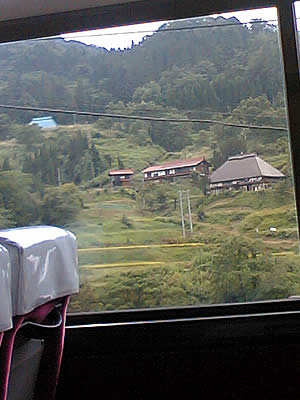 小谷村。雨飾山はこの山村のさらに右奥。
