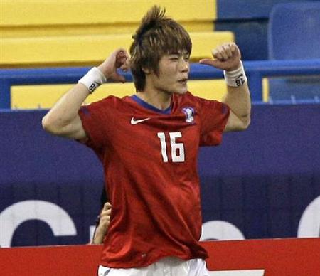 先制のPKを決めた韓国MF奇誠庸(セルティック=スコットランド)が
