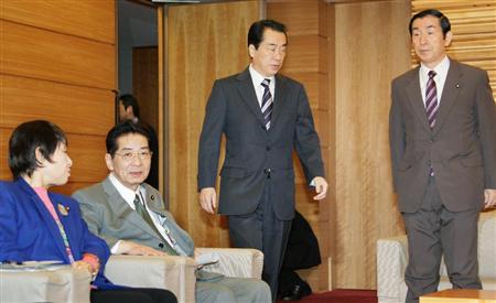 仙谷由人官房長官と岡崎トミ子国家公安委員長は