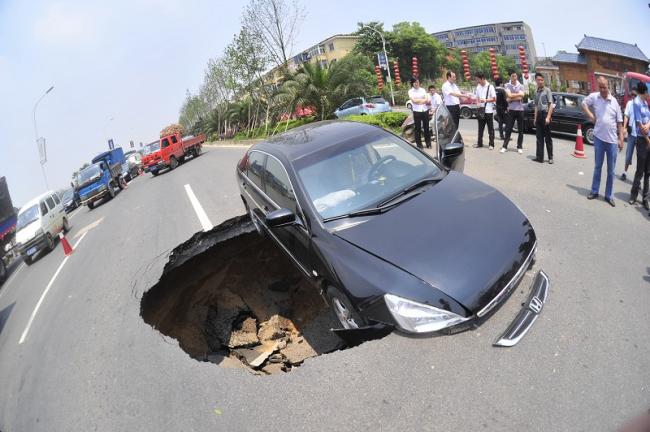 広西自治区などの各地で、突然地面に大きな穴が開く現象が